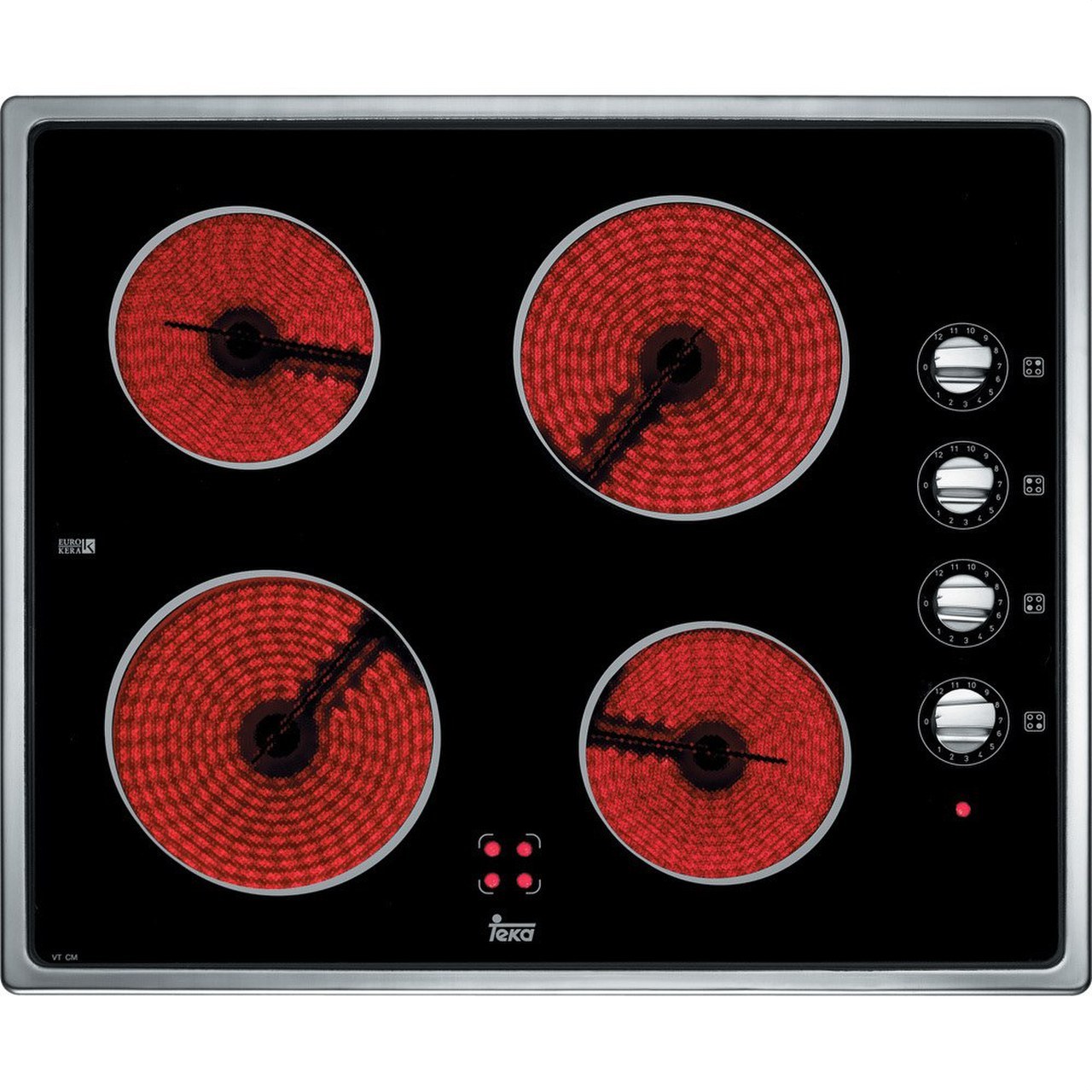 Vitrocerámica de 60 cm VT CM de Teka. 4 zonas de cocción. Panel de control mecánico. Marco de acero.